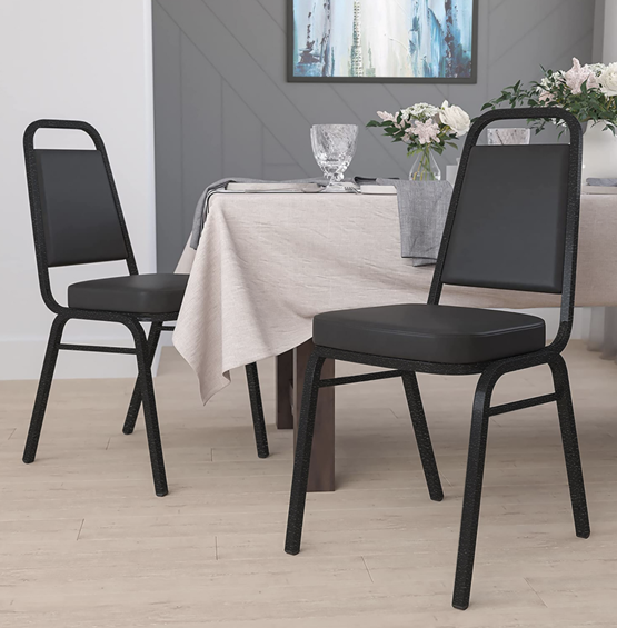Say “hello!” to the OfficeSource Reese Collection Square Back Stacker with Black Textured Metal Frame! Replace your worn-out seating with this commercial quality 18'' stack chair from the Holland Bar Stool Co. This traditional-styled stack chair is upholstered in a black commercial grade vinyl. The frame is finished in a black baked powder epoxy finish that will resist scuffs and scratches. Not only are you green in the product, but you’re also green in storage space! |